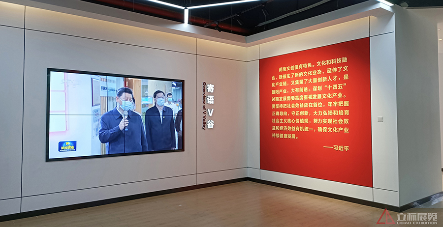 該項(xiàng)目的主要設(shè)計(jì)元素為數(shù)字科技的 “云”,瀏陽(yáng)河畔的 “水”。馬欄山作為中國(guó)視頻文化產(chǎn)業(yè)的風(fēng)向標(biāo),是文化和科技的集中交融之處,智慧之云激蕩著她的精魂體魄,未來之子孕育在她的腹中。而她自身又處在瀏陽(yáng)河的第八道灣懷中,湖湘之水蜿蜒而過,勾勒出她 “V” 字形的身姿曲線。我們通過在有效的布展空間內(nèi),充分利用聲、光、電等現(xiàn)代新媒體技術(shù),創(chuàng)造兼具湖湘地域文化和科技創(chuàng)新文化兩大特色的展示模式,為觀眾帶來新奇的審美藝術(shù)享受。