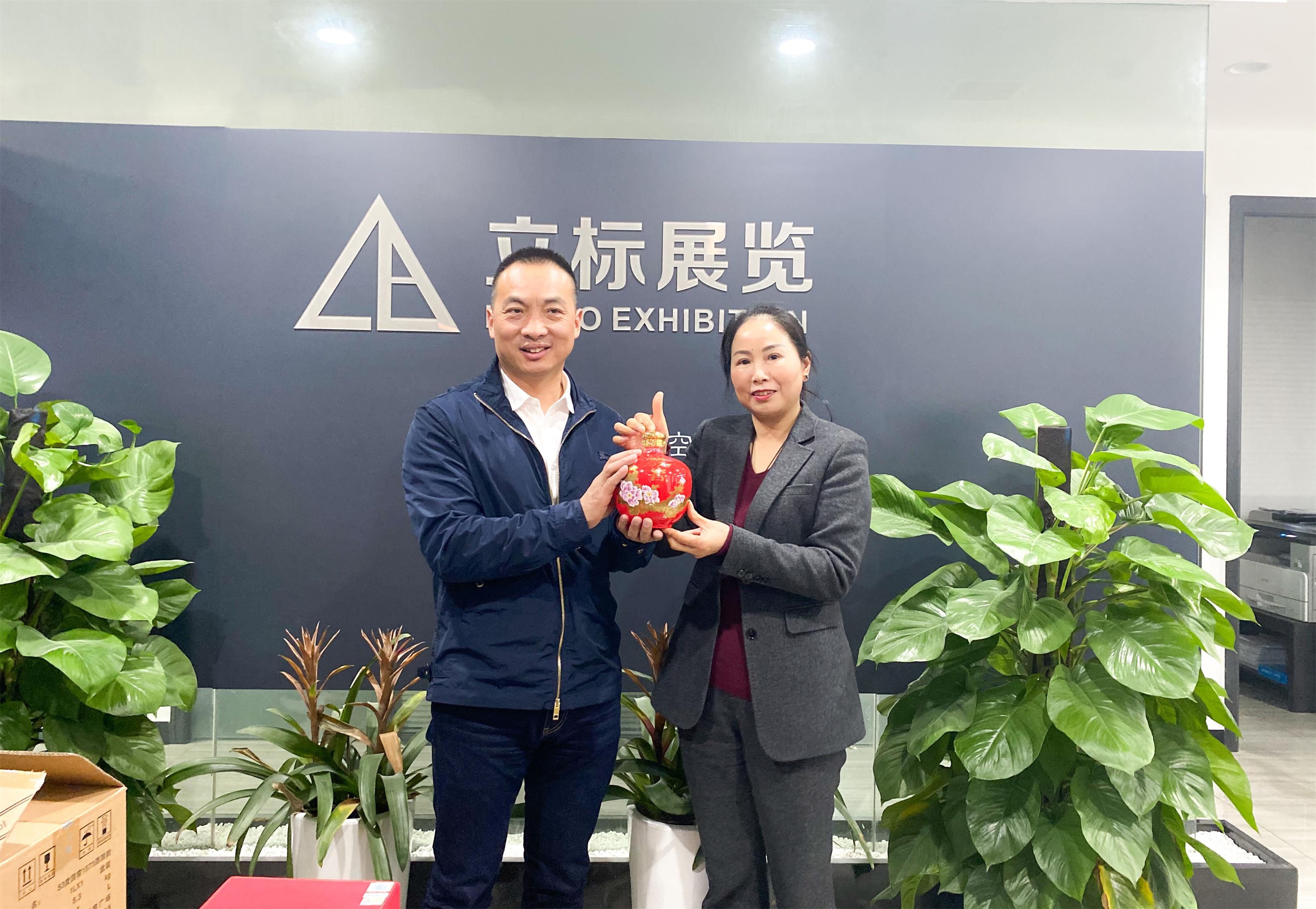 座談會上,雙方就企業(yè)文化、發(fā)展規(guī)模、經(jīng)營狀況等方面進行了深入交流。隨后雙方合影留念,長沙富文酒業(yè)有限公司董事長明金花向總經(jīng)理劉剛強贈送了瀘州老窖名酒。立標(biāo)展覽總經(jīng)理劉剛強對其表示深深的感謝!
