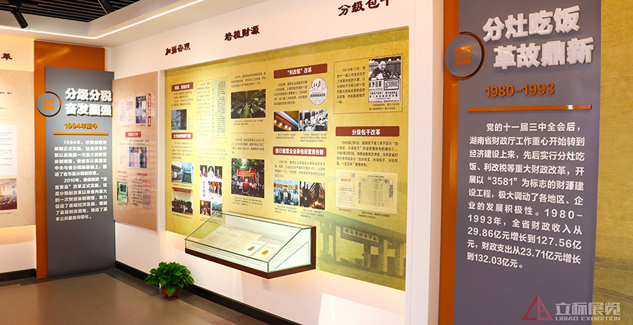 湖南省財(cái)政廳歷史陳列館是一個(gè)湖南省財(cái)政歷史的象征和文化建設(shè)的重要標(biāo)志,是展示歷史、文化傳承的重要窗口。 展館主要以現(xiàn)代電子觸摸屏與傳統(tǒng)圖文展板相結(jié)合,配以部分有歷史感的實(shí)物,回顧省財(cái)政廳的風(fēng)雨歷程,展示財(cái)政工作對(duì)湖南經(jīng)濟(jì)社會(huì)發(fā)展所發(fā)揮的宏觀調(diào)控、政策保障和資金支持作用以及財(cái)稅文化的深厚底蘊(yùn)。綜合采用實(shí)物、圖片、文字、觸摸屏手段等方式展現(xiàn),按照“內(nèi)容實(shí)事求是、文字準(zhǔn)確精煉、設(shè)計(jì)前瞻新穎、布展美觀大方、通盤(pán)留有余地”思路進(jìn)行。