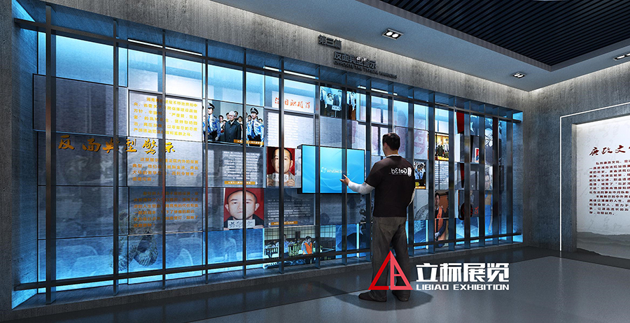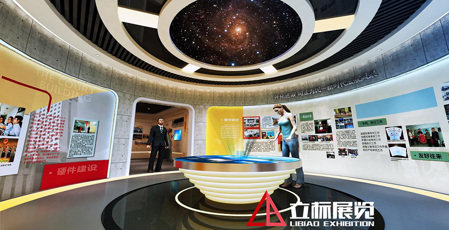 法治承載著一個(gè)國(guó)家的立國(guó)理想,構(gòu)筑起一個(gè)國(guó)家的強(qiáng)國(guó)夢(mèng)。本館整合省高院機(jī)關(guān)信息、發(fā)展歷程、發(fā)展成就、新時(shí)代法院風(fēng)采等方面的展示內(nèi)容,理清展示思路,按照由過(guò)去到現(xiàn)在,由概況到分述的線索有序展開(kāi)??臻g針對(duì)重點(diǎn)展示內(nèi)容,選擇恰當(dāng)?shù)母呖萍颊故臼侄芜M(jìn)行傳達(dá),使展演方式豐富有趣,同時(shí)運(yùn)用多元化的構(gòu)成關(guān)系將裝飾用材與展品相互融合,整體設(shè)計(jì)注重空間感和節(jié)奏韻律,在豐富的變化中尋求和諧統(tǒng)一 ,讓觀者在參與互動(dòng)中接受新時(shí)代法院的風(fēng)采及法律文化的熏陶。